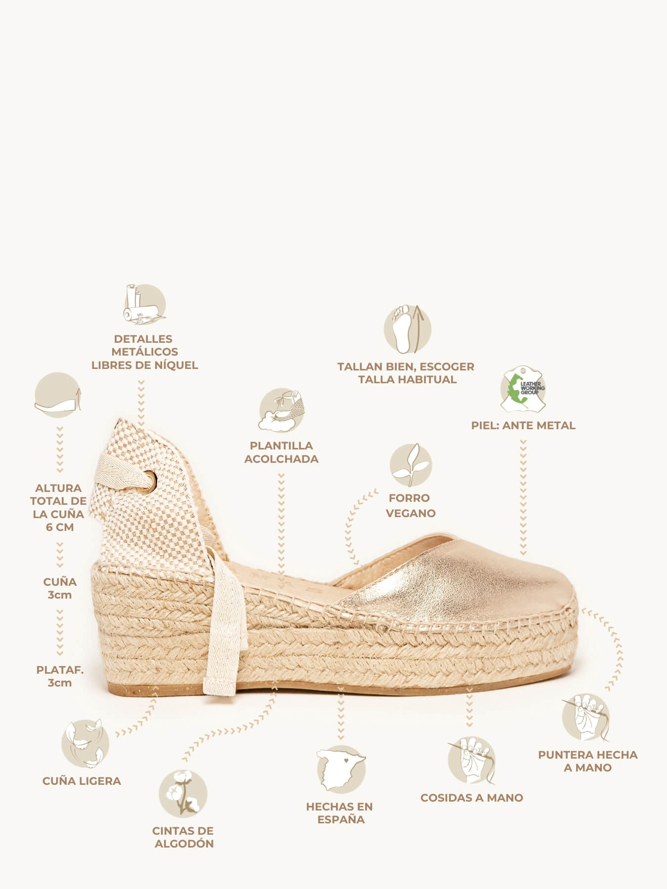 - El Ante Metal de la alpargata Romero está certificado por el Leather Working Group (una organización que promueve prácticas ambientales sostenibles)